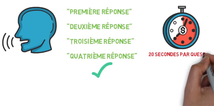 Chaque session dure une dizaine de minutes et ne peut être interrompue, sous peine de devoir tout reprendre du début. Les candidats ont 20 secondes pour répondre à chaque question.