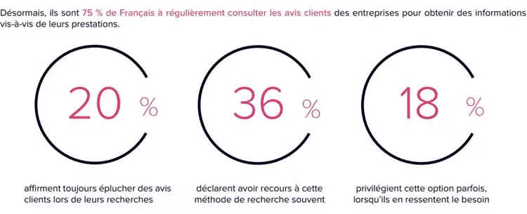 Les consommateurs qui préparent un achat sont très curieux d’avis et de recommandations d’autres acheteurs. Les avis clients jouent un rôle dans le choix d’une marque ou d’un produit pour 75 % des consommateurs.