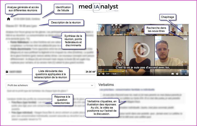 Dans une étude MedIAnalyst, les résultats peuvent prendre la forme d’un rapport écrit ou d’une interface de consultation interactive qui permet d’écouter les verbatims qui supportent les conclusions.