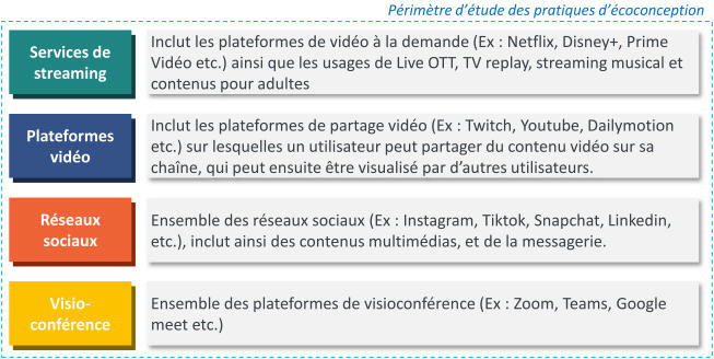 L’étude ne fait pas état des plateformes vidéo d’entreprise mais leur fonctionnement est assimilable aux services de streaming (Netflix etc.) ou aux plateformes (de partage) vidéo (YouTube etc.).