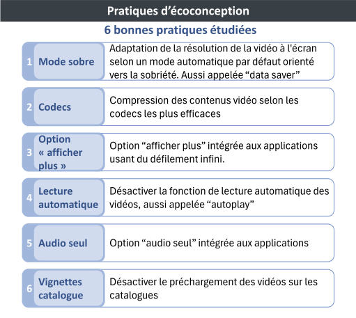 L’étude s’est intéressée à 6 bonnes pratiques.